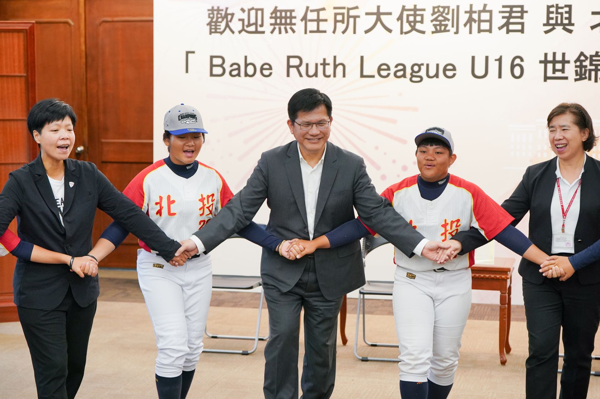 台北市立北投國中女子壘球隊於2025年8月參與2025貝比魯斯U16世界女子壘球錦標賽獲得冠軍,賽事一結束即收到賴清德總統、蕭美琴副總統與駐美代表俞大㵢大使賀電,讓每一位台灣小將備感肯定與榮耀。返台後,感謝外交部林佳龍部長接見,為北投小將們辦理奪冠慶賀茶會,特別準備「壘球冠軍蛋糕」及「冠軍雞蛋糕」,更致贈每位球員印有球員背號與「TEAM TAIWAN」字樣的皮革壘球鑰匙圈及旅行小包,勉勵大家都能勇敢逐夢。